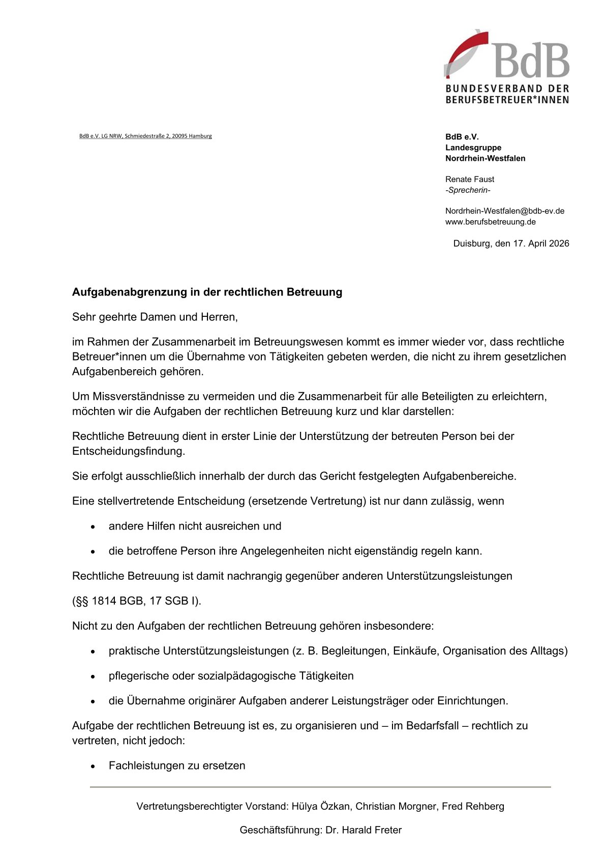Das Schreiben können Sie hier herunterladen: Aufgabenabgrenzung_Berufsbetreuung_BdB_NRW.pdf